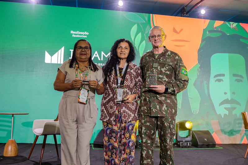 Raul Jungmann fez uma homenagem às pessoas que cuidam da Amazônia e entregou placas de homenagem à Neidinha Suruí, ativista ambiental e indigenista brasileira, fundadora da Associação de Defesa Etnoambiental Kanindé, que luta há décadas pelos direitos dos povos indígenas e pela proteção da Amazônia; à Dona Nena, líder comunitária, empreendedora e produtora rural da Ilha do Combu, em Belém do Pará; e ao general Ricardo Costa Neves. Ao final, Jungmann também foi homenageado pela ex-ministra Izabella Teixeira. “Precisamos superar essa polarização que nos divide e nos obriga a ser a favor ou contra. Por isso, criamos espaços onde todas as vozes podem ser ouvidas. A saída é a união de todas as frentes”, destacou Raul.