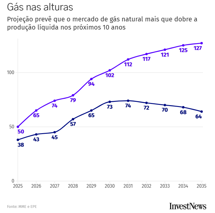 Com três novos gasodutos em operação, a previsão é que a produção líquida de gás natural no país deverá mais que dobrar, saindo de cerca de 50 milhões de metros cúbicos por dia atualmente para 127 milhões de m³ por dia em 2035, segundo projeções do Ministério de Minas e Energia (MME), elaboradas pela Empresa de Pesquisa Energética (EPE).