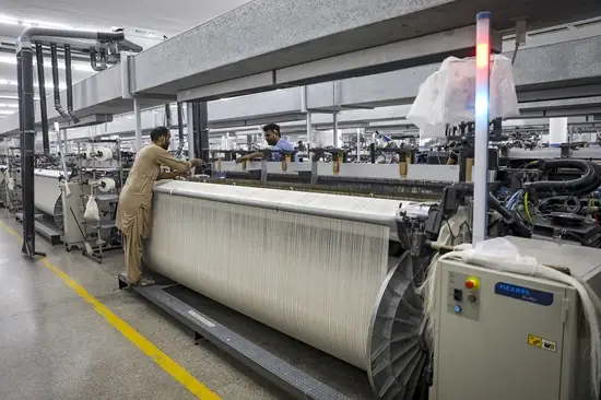 Um tear em uma fábrica têxtil em Faisalabad, Punjab, Paquistão. Fotógrafo: Asad Zaidi/Bloomberg