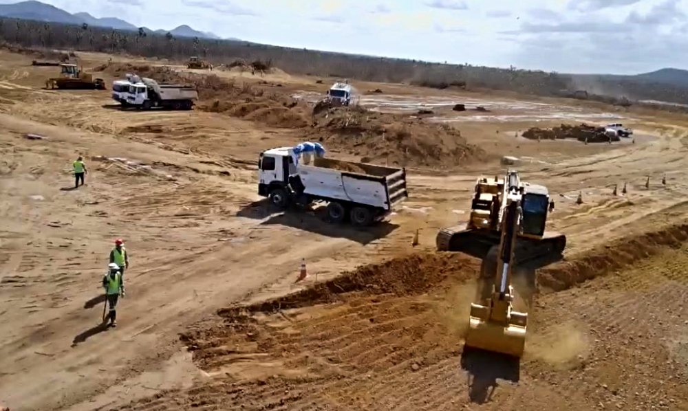 Máquinas trabalham em ritmo acelerado para preparar a base do amplo terreno do Data Center Pecém