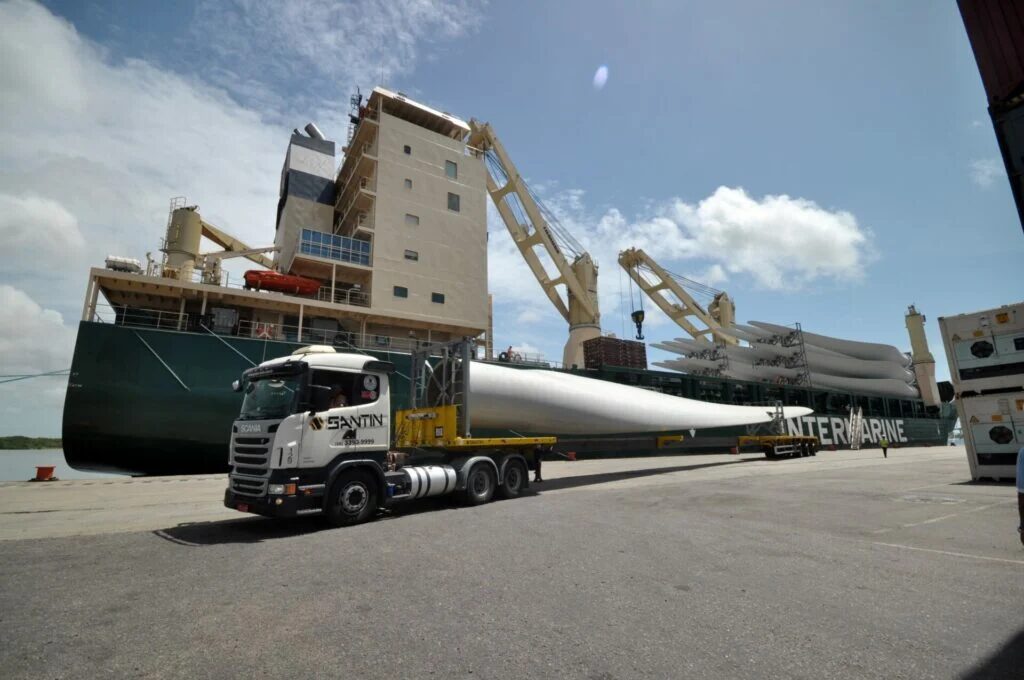 Pá de uma torre eólico sendo descarregada no Porto de Natal em 2015 – Foto: Magnus Nascimento/TN