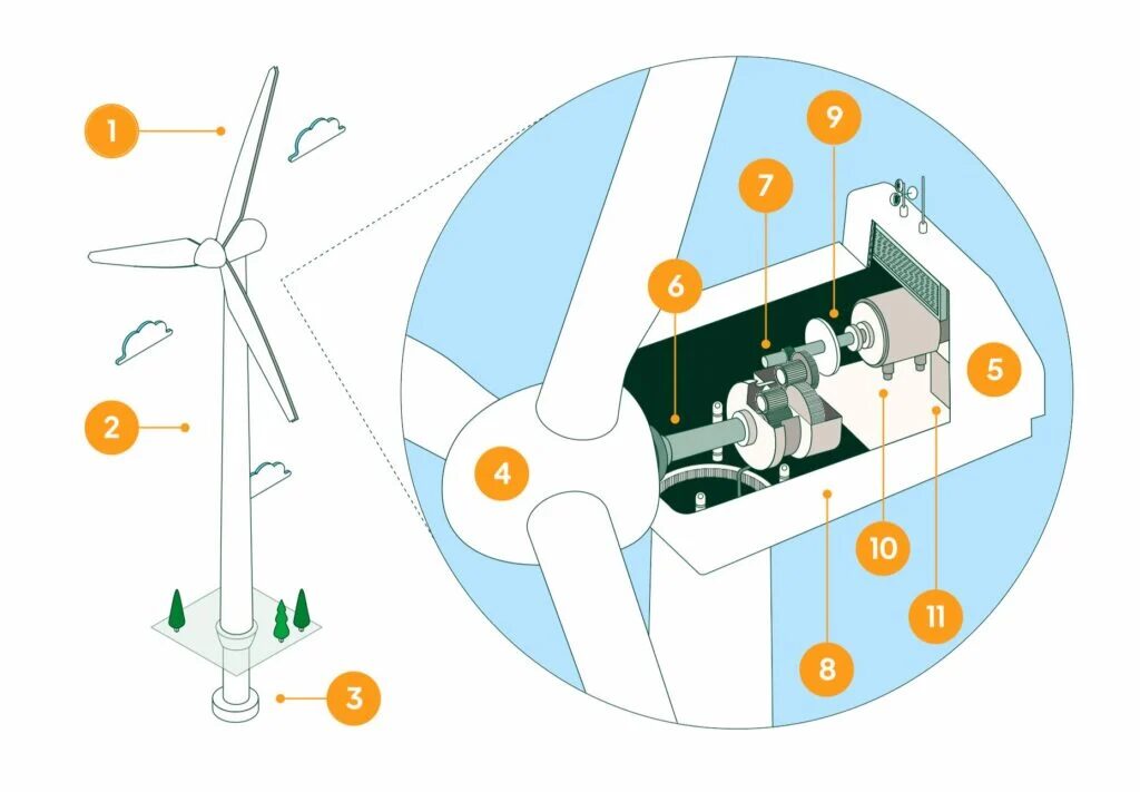 Os componentes de um aerogerador – Gráfico: Iberdrola/Reprodução