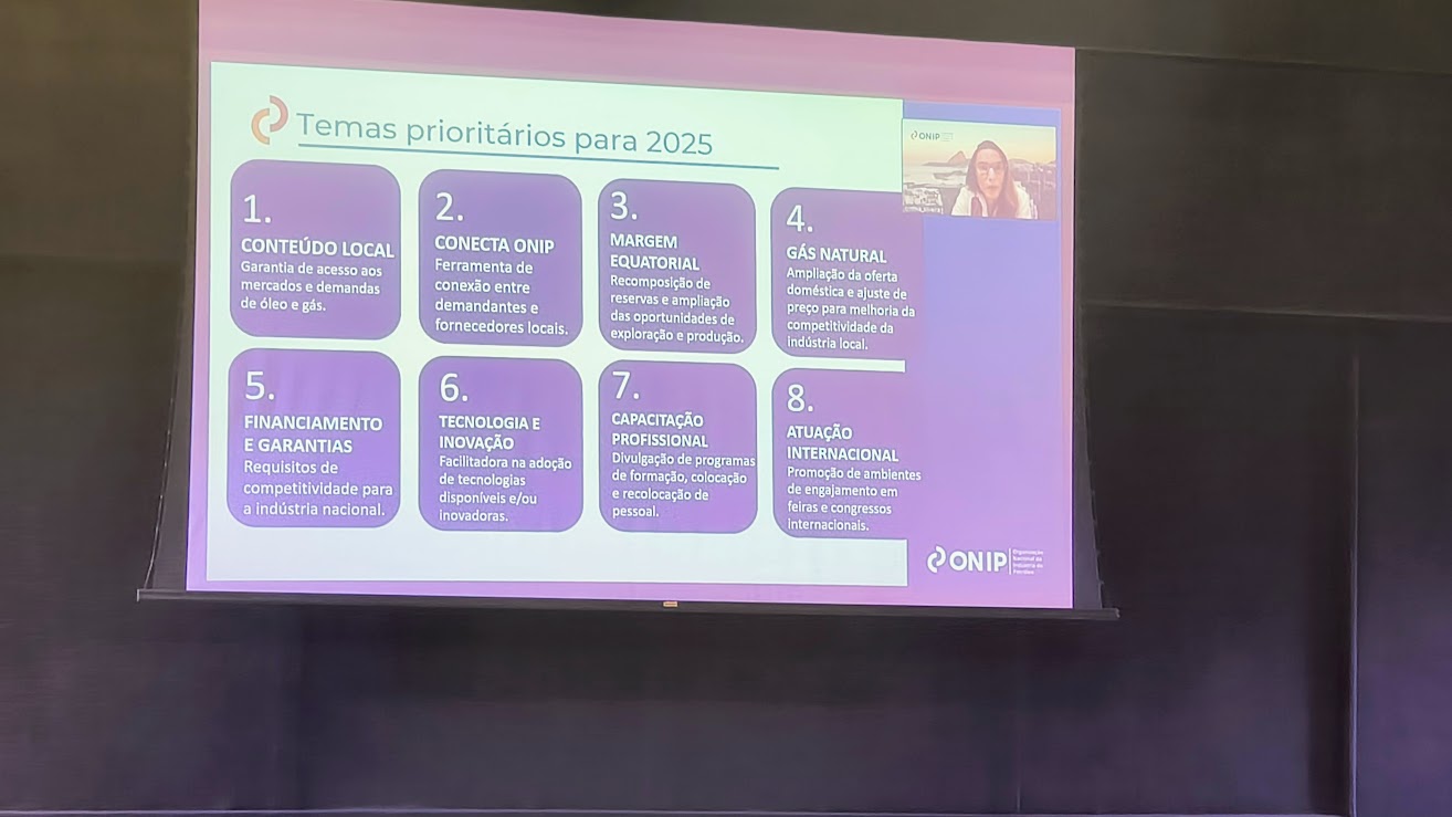 Ronaldo apresentou o documento com 13 capítulos, solicitado pela ONIP, que entrega os investimentos e oportunidades no Brasil, apresentado durante a OTC Houston 2025. Também ressaltou o alto volume das demandas por bens e serviços que as FPSOs oferecem ao mercado, desde a contratação de serviços básicos para habitação, alimentação, serviços médicos até altas tecnologias, assim como as distribuidoras de gás natural no Brasil, outra grande oportunidade.