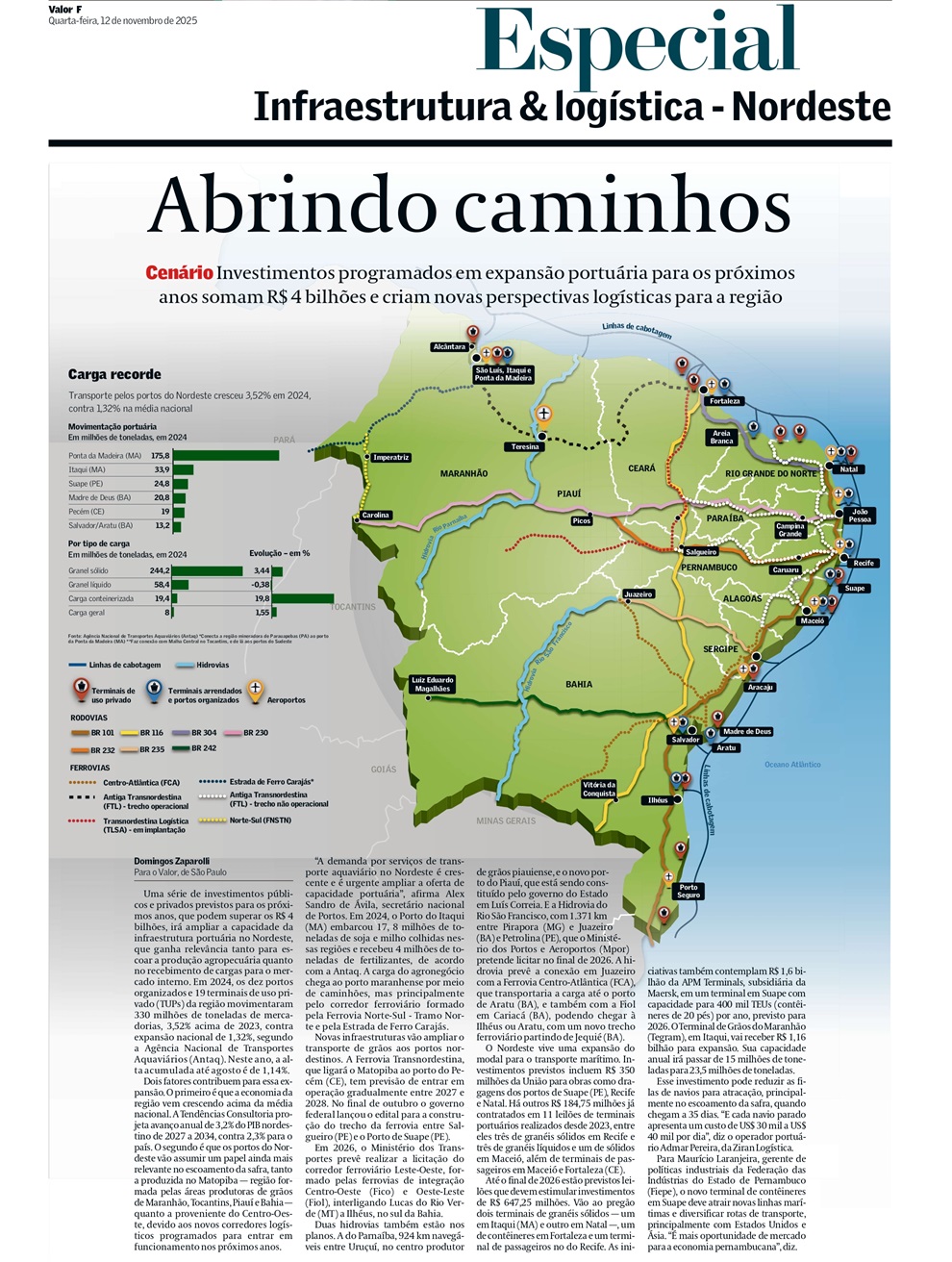 Matéria completa em: https://valor.globo.com/publicacoes/especiais/infraestrutura-logistica-nordeste/noticia/2025/11/12/investimentos-em-portos-criam-novas-perspectivas-logisticas-para-o-nordeste.ghtml.