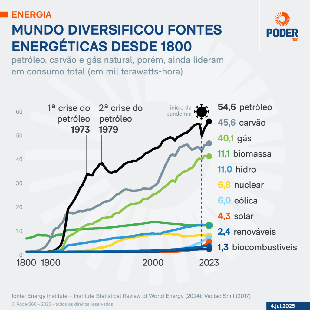 As curvas de todas as fontes energéticas seguem ascendentes ou se estabilizaram. A humanidade optou por uma direção –a adição energética–, ou seja, sermos abastecidos por múltiplas fontes.
