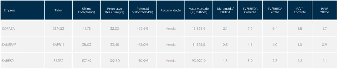 O momento virtuoso do saneamento Brasil deve seguir impulsionado por fortes investimentos na expansão da cobertura de água e esgoto. Esse avanço ocorre após os incentivos trazidos pelo novo marco regulatório e pela revisão de planos por municípios e microrregiões. A possibilidade de novas privatizações e eventual abertura de capital de empresas privadas em 2026 tende a sustentar o otimismo atual. Contudo, o risco hidrológico e o desafio de viabilizar os projetos mais complexos, uma vez que os projetos mais maduros já foram licitados, são obstáculos a serem superados.