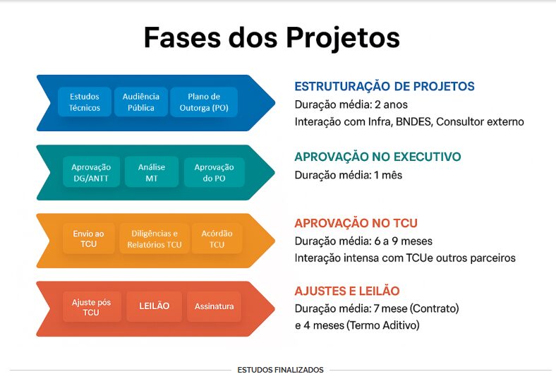 Com o apoio do BNDES, houve também a estruturação de concessões rodoviárias importantes como o lote Rota Agro Norte e a abertura de audiência pública para os lotes Rota dos Sertões e Rota Gerais, ambos com estudos em andamento.